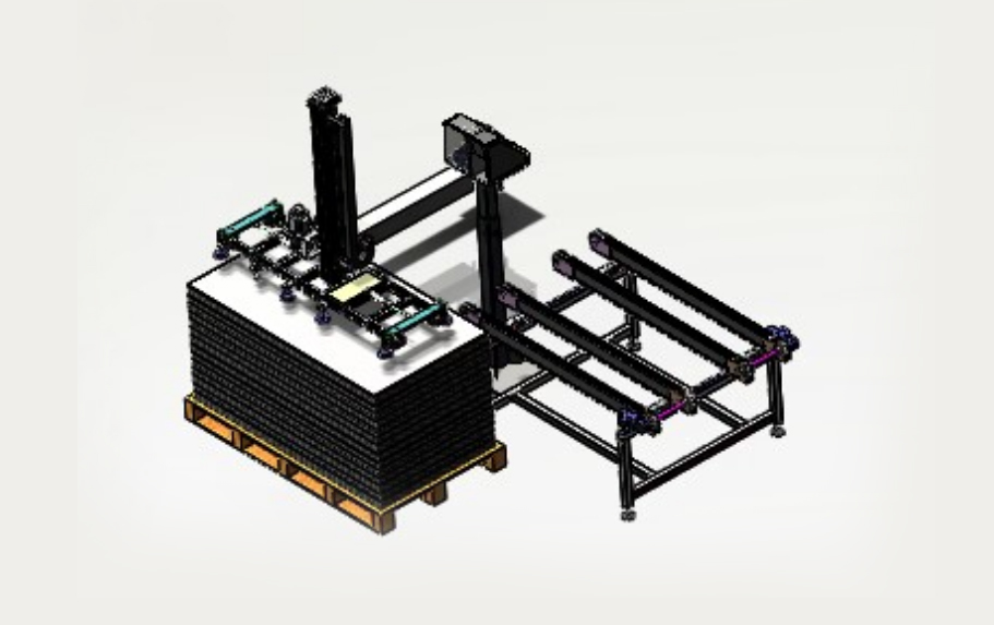 本生產(chǎn)線依據(jù)用戶需求,進行“量身”設計,由層壓前鋪設傳輸線;通過不同機構的傳輸、轉(zhuǎn)運、變向、定位、旋轉(zhuǎn)/釋放實現(xiàn)組件封裝過程的流水化操作,可提高單位組件生產(chǎn)效率。